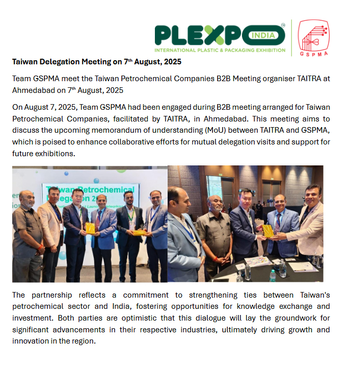 Petrochemical Companies, facilitated by TAITRA, in Ahmedabad. This meeting aims to